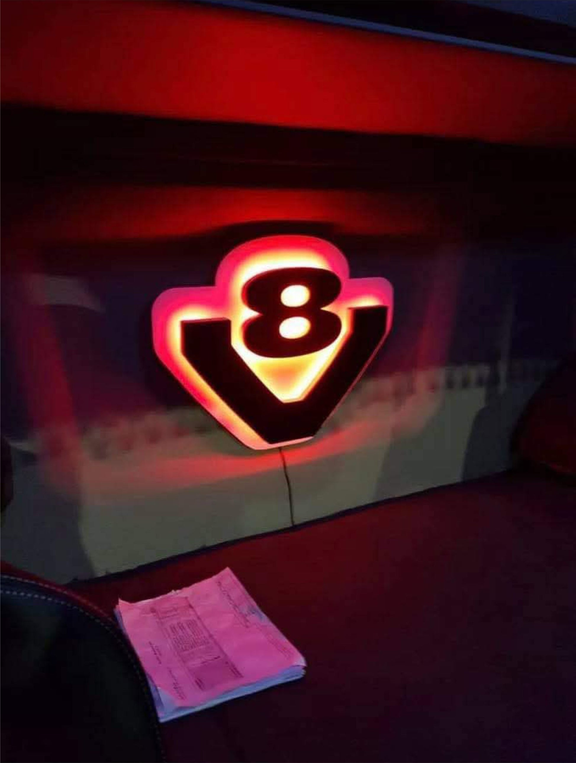 Znak V8 3D – Podświetlana Dekoracja do Kabiny