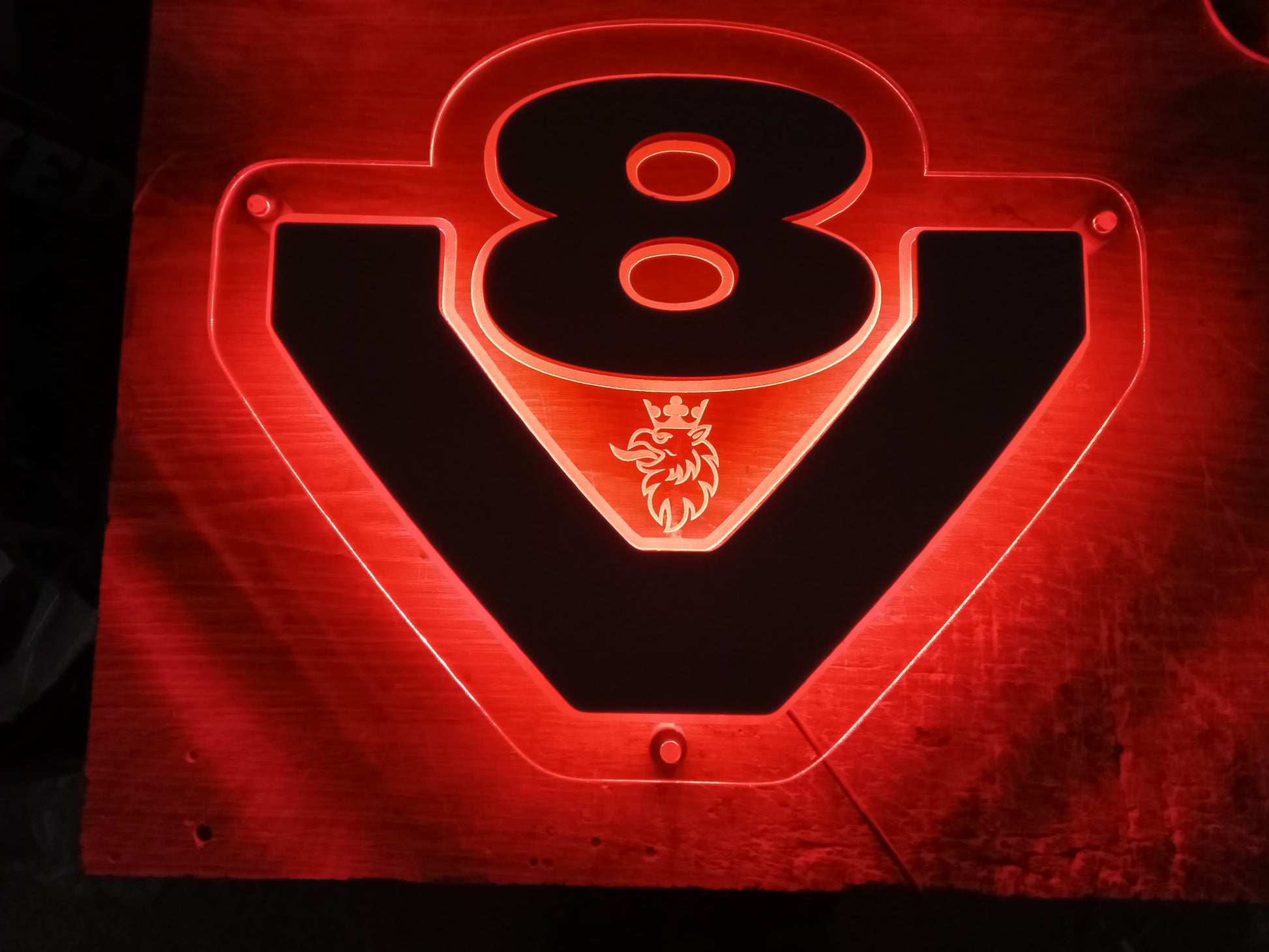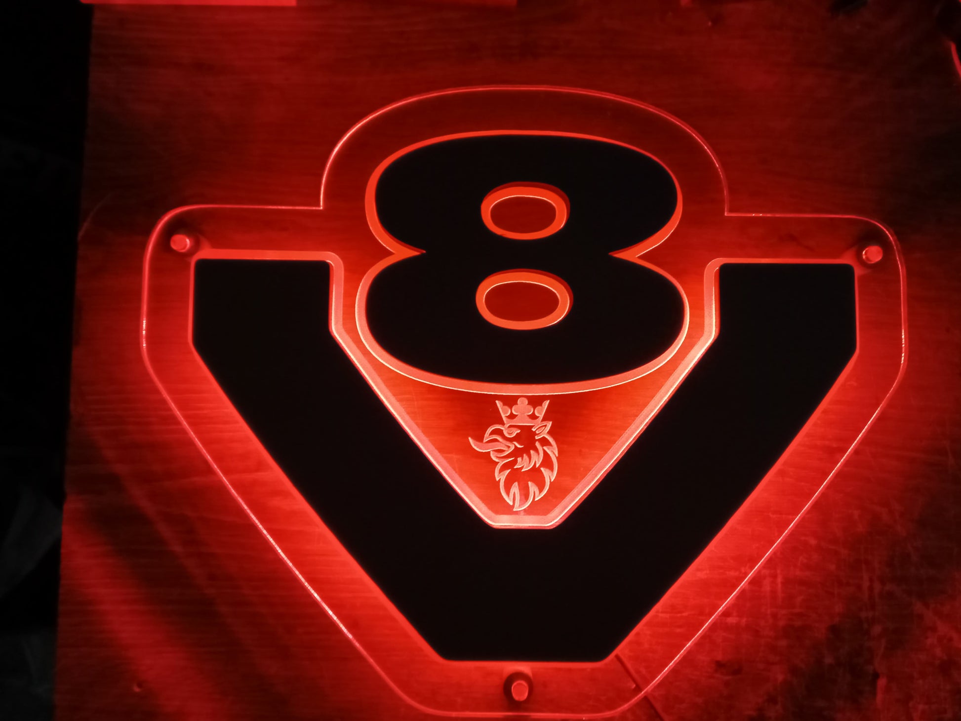 🔥 Znak V8 – Grawerowany i Podświetlany 🔥